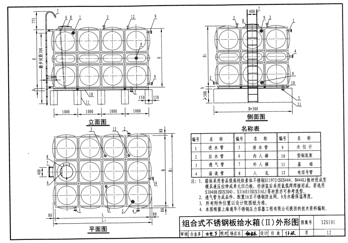 不銹鋼消防水箱圖集 12S101 (外形圖):