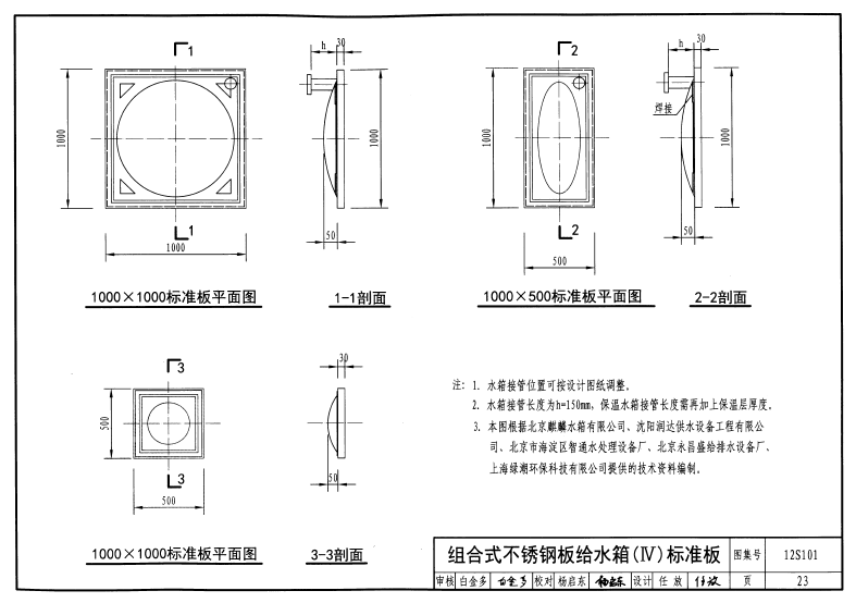 12S101 不銹鋼消防水箱圖集(基礎(chǔ)圖)
